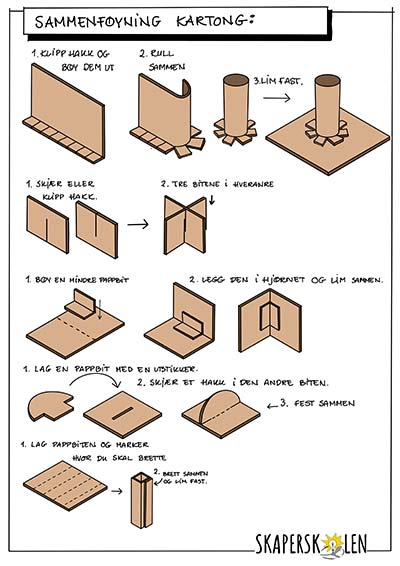 På illustrasjonen nedenfor finner du eksempel på hvordan dere kan jobbe med å gi elevene relevant bakgrunn til hvordan de kan bruke et fysisk materiale som for eksempel papp, i oppdraget. Elevene erfarer selv kunnskapen de trenger for å bruke et gitt materiale i prosjektet.