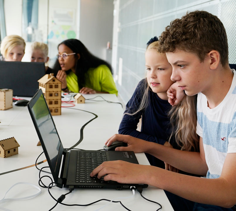 - De tester og prøver ut løsningen, og deler erfaringer, feil og innsikt – enten med enkelte medelever eller i mindre grupper, slik at de lærer av hverandre.